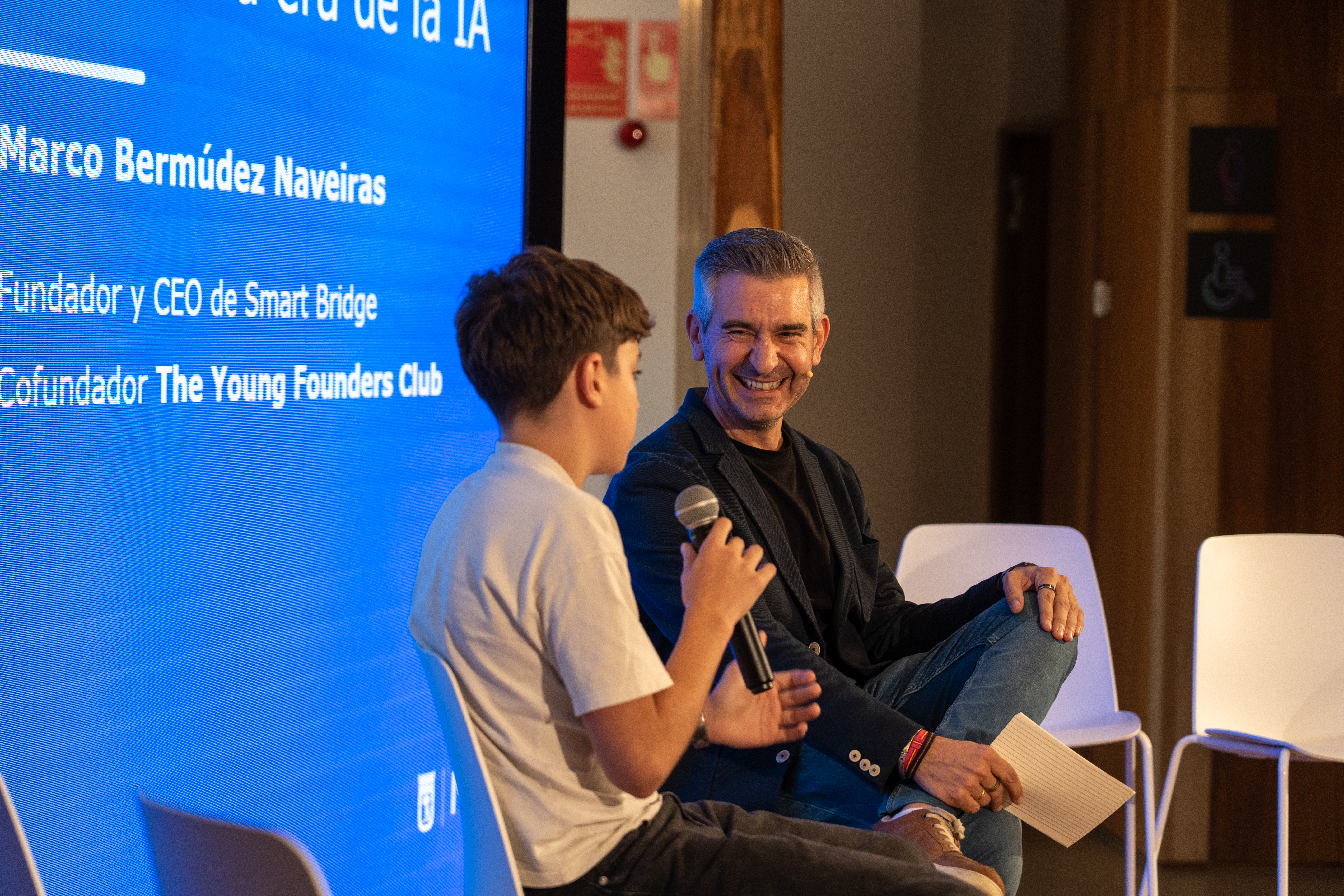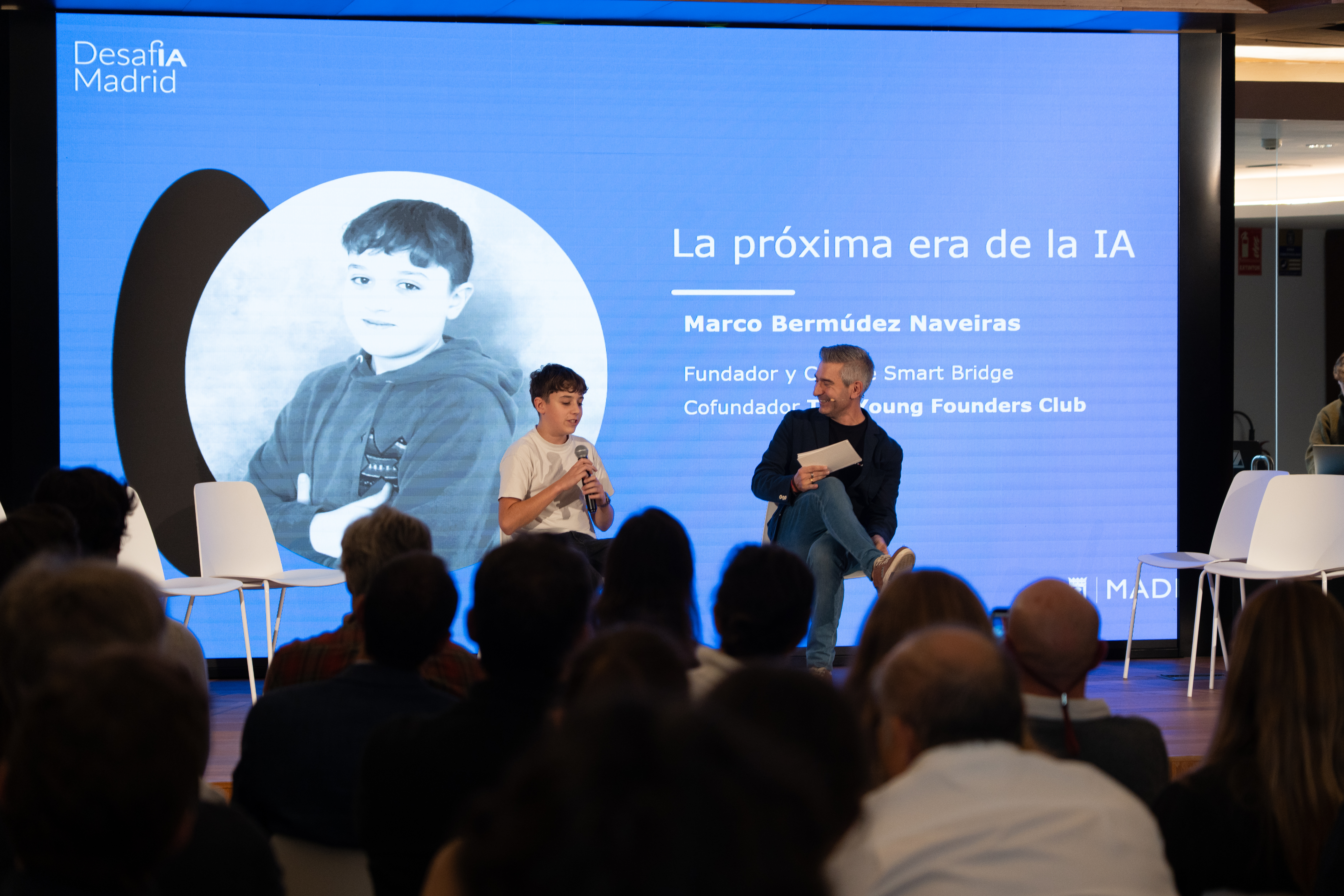En el evento, además de los bloques de los emprendedores, contamos la asistencia de Marco Bermudez Naveiras un joven chaval con varias iniciativas empresariales en el mundo de la IA Generativa para la construcción de puentes, que ha creado un movimiento de jóvenes emprendedores. Una brutalidad con tan sólo 14 años.